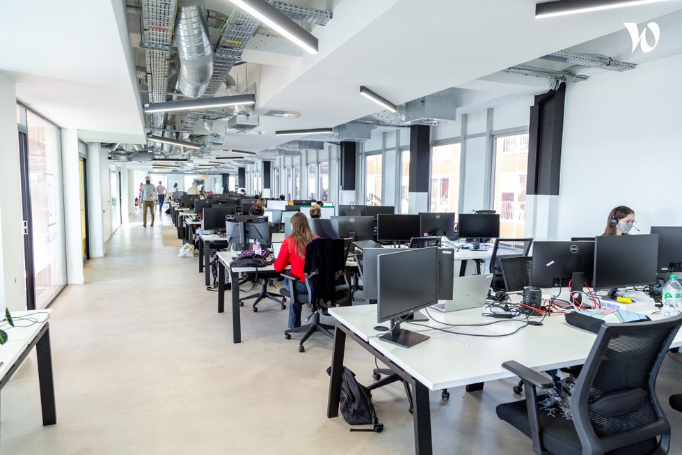 Modern office space designed to foster creativity and collaboration, likely featuring contemporary art from its platform artists. Located in a vibrant Parisian district known for its cultural and artistic atmosphere.